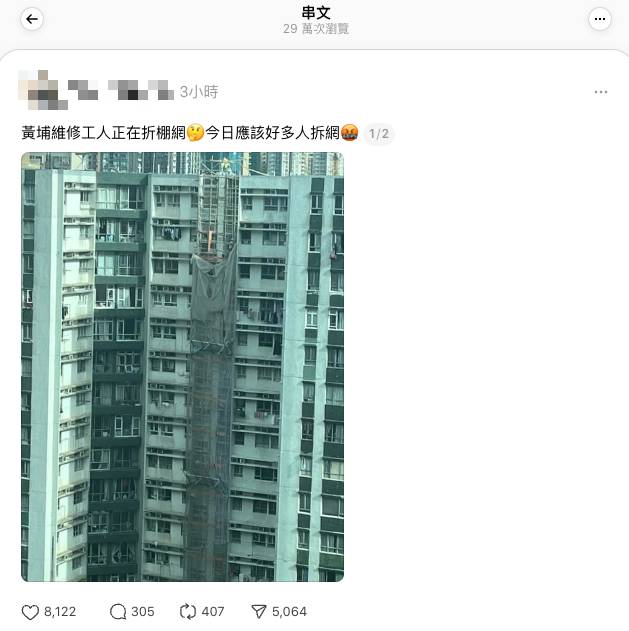 宏福苑火災 棚網拆除 (圖片來源:Threads)