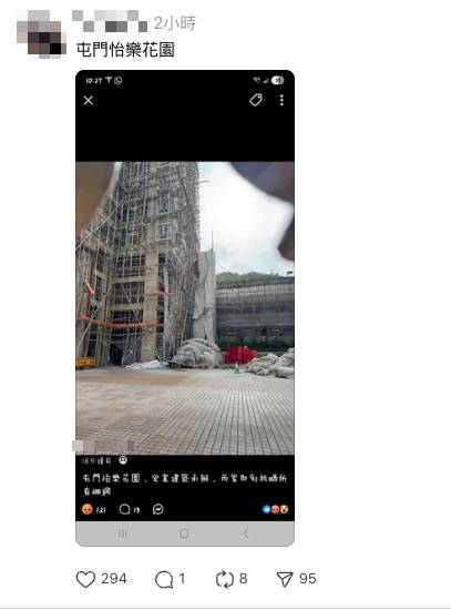 大埔宏福苑昨日發生致命五級大火,造成44死279人失聯的慘劇震撼全港。火災發生後,全港多間屋苑包括葵涌怡勝花園、屯門怡樂花園等,被居民發現疑似正在緊急拆除棚網,網民紛紛質疑這些承建商心虛毀滅證據。特首今早召開跨部門會議後,於13:02分發文宣布,政府已即時安排巡查全港所有正在進行大型維修的屋苑,檢視棚架及建築物料的安全。