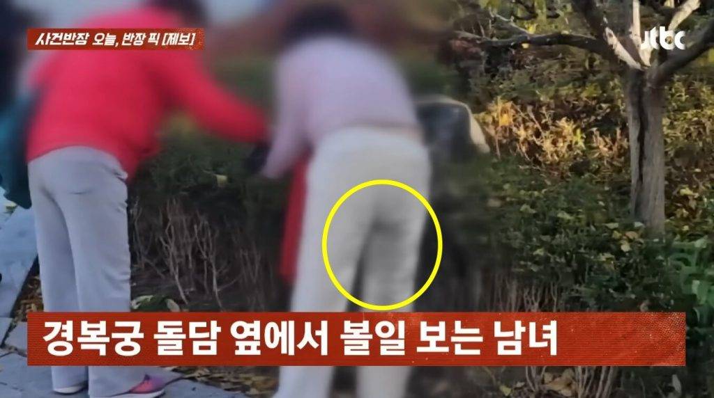 根據韓媒JTBC News報道,事件發生於本月10日中午時分,地點位於首爾景福宮神武門附近的古蹟石牆。從民眾拍攝的畫面可見,一名中年男子蹲在石牆前一棵樹下,雙手拿著紙巾,明顯正在進行排便行為。更令人震驚的是,在這名男子右邊的灌木叢中,還有一名女子以同樣姿勢蹲著。爆料者透露,女子起身離開時,穿著的白褲上留下明顯污漬,而男子則慌慌張張地從石牆下走出來。