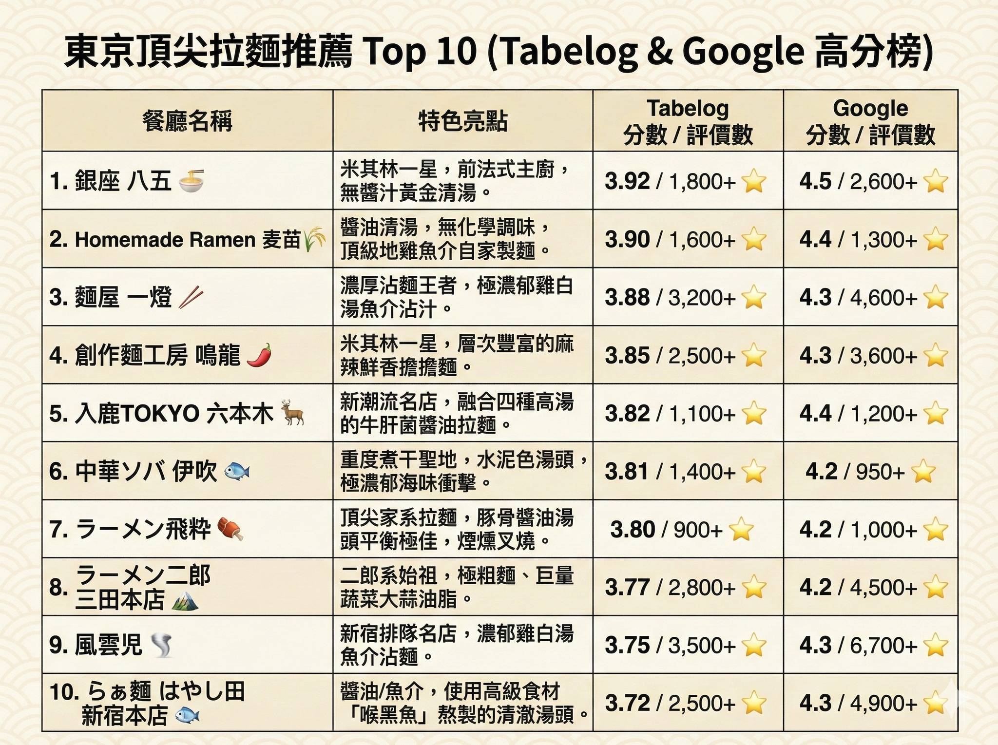 2026東京拉麵AI推薦10大名店|Tabelog/Google高分兼過百留言 網民超認同