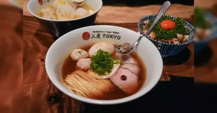 第五名的入鹿TOKYO六本木是近年東京拉麵界的新潮流代表。店家最著名的創新是將牛肝菌融入醬油拉麵中,湯頭混合了雞、豬、蝦、貝四種高湯精華。這種獨特的組合帶來奢華的香氣和全新的味覺體驗,展現出現代拉麵的創意可能性。