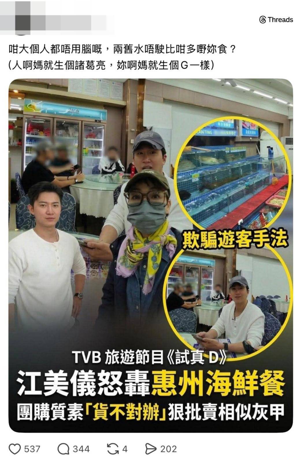 試真D|江美儀惠州食海鮮中伏被嘲唔用腦 江母慘被侮辱 19字反擊獲過萬人讚好