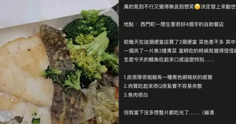 事主其後上網查詢資料,懷疑自己誤食的並非鱈魚,而是俗稱「油魚」的魚類。她批評店家疑為節省成本,以廉價魚類混充鱈魚販售,並指出一個便當售價達160元新台幣(約40港元),質疑做法欠缺誠信。事主直言「這間店居然為了省成本,完全沒有標示賣給不知情的客人」,並呼籲若見到具相關特徵的魚肉應提高警覺,避免誤食。她提醒其他人「大家以後看到這種皮黑黑粗粗口感很Q的假鱈魚千萬不要夾,不然真的會變成自走噴油機」。