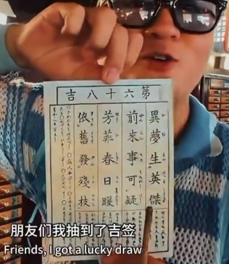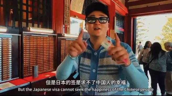 上周一流傳的影片顯示,這名中國男子在東京著名景點淺草寺內拍攝短片。他首先在本堂內介紹天井的「龍圖」和「天人圖」,聲稱是出自中國唐代風格,但事實上淺草寺採用的是日本鎌倉時代末期的仿唐風格,而他提及的「天人圖」更是淺草寺在1958年重建期間的創作。隨後男子走到求籤處,手持一疊陰司紙,並將其中一張投入需要100日圓的錢箱內,成功求得第68籤。整個過程被他拍攝下來並上傳至社交平台,聲稱要「騙鬼子」。