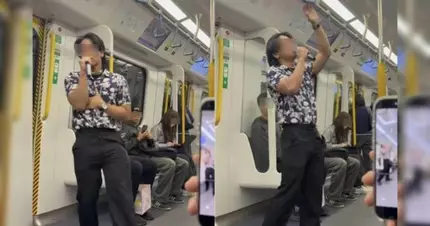 有女乘客在社交平台Threads分享影片,顯示兩名男子在東鐵線車廂內進行即興表演。其中一人穿白色衛衣負責彈結他伴奏,另一名留長髮、穿花恤衫的男子則擔任主唱,在扶手旁投入演唱Justin Bieber的《Baby》和美國樂隊The Walters的《I Love You So》。雖然主唱明顯不太熟悉歌詞,需要頻頻看手機提示,但仍有乘客鼓掌表示讚賞。影片中可見,有戴冷帽的乘客坐在一旁偷笑,長髮男更主動靠近與對方互動,最後三人一同在火炭站下車,相信為同行人士。