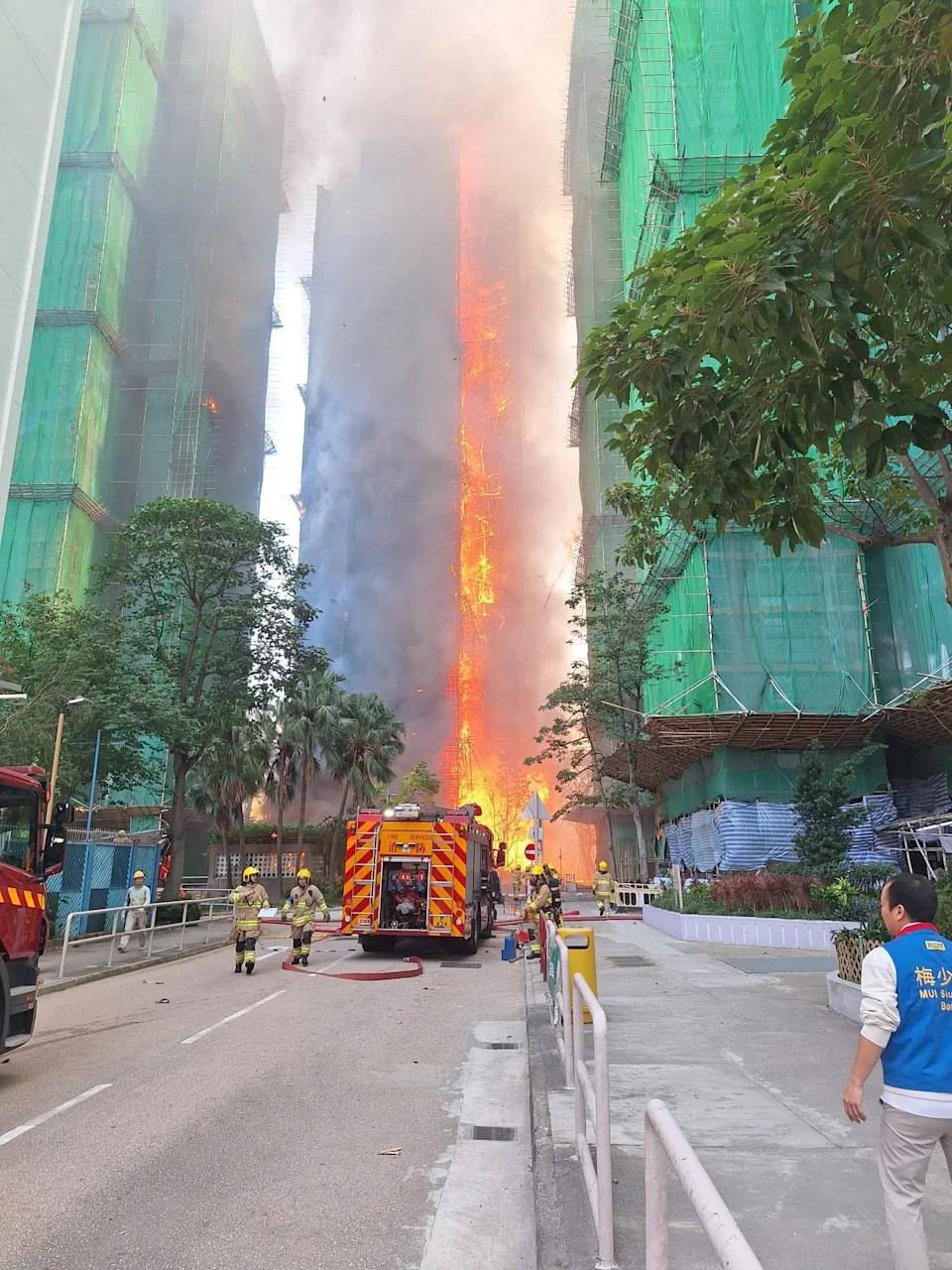 消防處表示,起火的宏昌閣高32層,下午到場時外牆竹棚架已陷入猛烈燃燒,火舌撲入單位內,並波及鄰近多座大廈。現場不斷有被困市民求救,但火場環境惡劣、雜物頻頻墜落,加上入夜後能見度低,情況極為複雜,促使當局短時間內兩度提升火警級別,最終於晚上6時22分升為五級火警。
