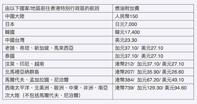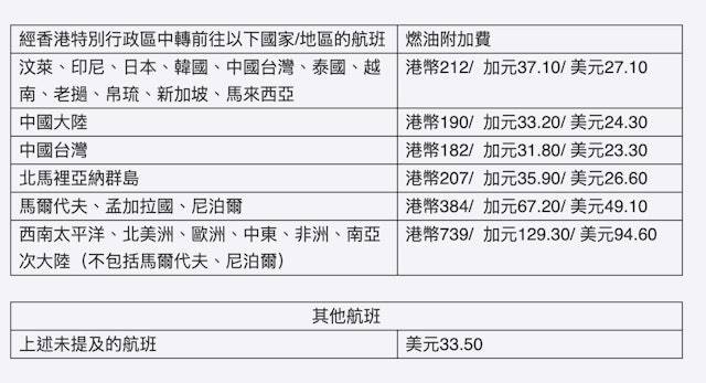 翻查各大航空公司網站,國泰航空目前日韓泰等短途航線收142元,歐美及澳紐等長途航線收569元,該公司每月檢視燃油附加費水平並按機制調整。業界人士提醒,燃油附加費適用於所有乘客,包括小童和嬰兒,不受限於座位級別和票價類型。