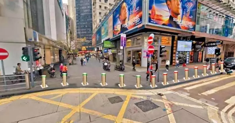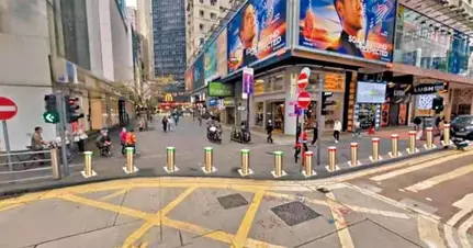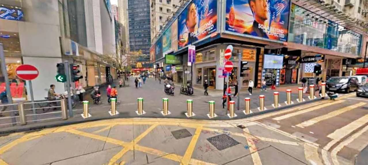 文件提及,面對此潛在的公共安全危機,並為徹底根治此長期風險,在該過路處一帶安裝堅固且符合國際安全標準的汽車防撞設施,例如防撞欄或護柱,屬「刻不容緩的公共安全必要項目」。當局強調此舉旨在為行人提供一道實體防線,以最直接的物理隔離方式,有效阻截車輛故意衝上人行區域,從而將潛在傷亡風險降至最低。根據文件的示意圖,工程合共安裝60支固定式護柱和收放式護柱,分布在5個不同位置,其中17支為收放式護柱,43支為固定式護柱。