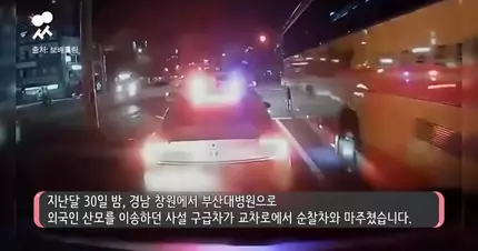 據韓國媒體報道,事發於上月30日晚上約9時,一輛救護車正緊急運送一名重傷孕婦前往釜山大學醫院。該名孕婦早前被一輛SUV撞倒,腹部受到重創情況危殆。救護車一路鳴笛行駛,沿途大部分車輛都有主動讓路,但同一行車線前方的一輛警車卻遲遲未有讓行動作。當時交通燈顯示紅燈,救護車透過廣播系統表示正運送危急病人,但警車仍然沒有讓開車道。其後右線一輛旅遊巴士主動讓路,救護車才得以切線繼續前往醫院。