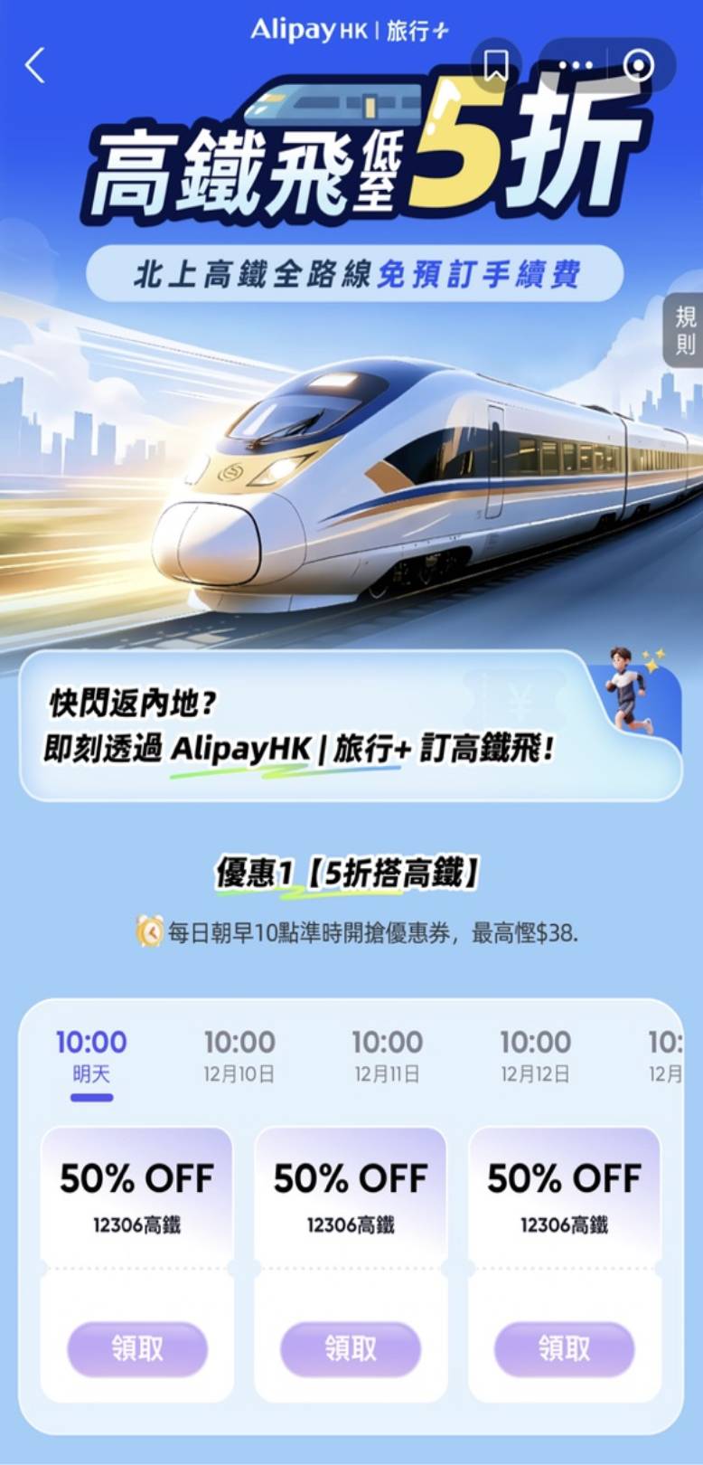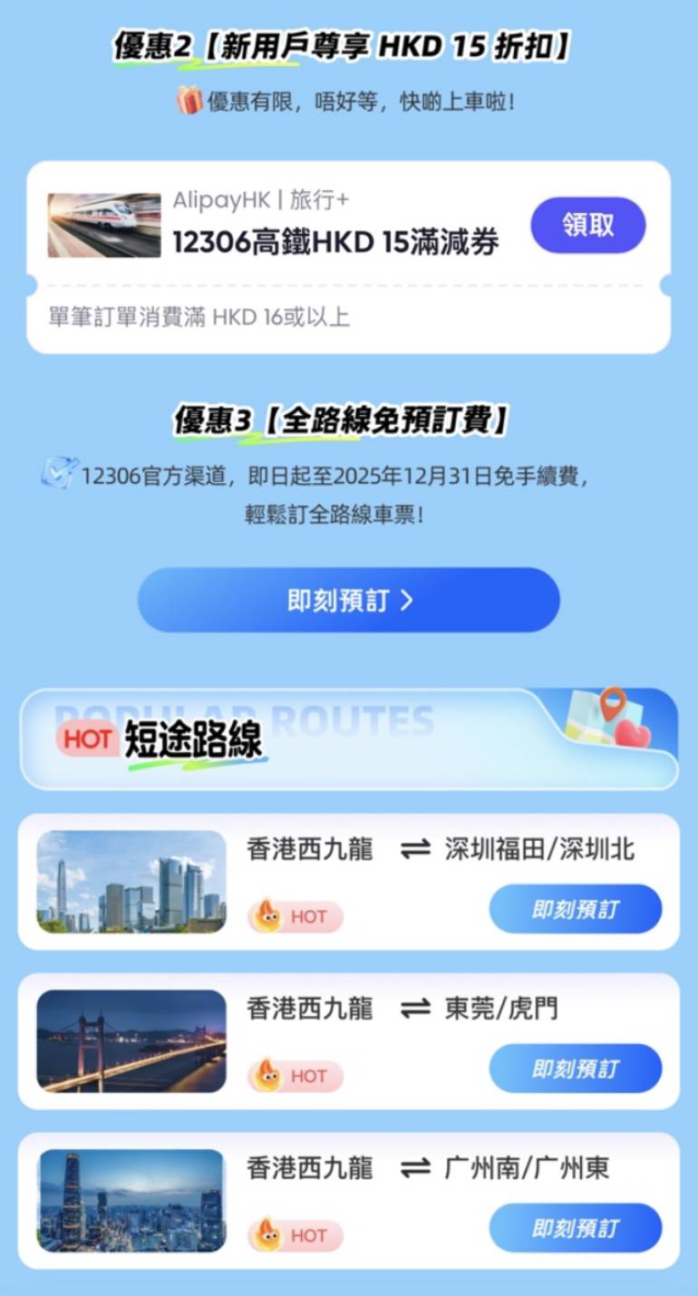 如果係第一次經「旅行+」預訂 12306 高鐵車票,可以拎埋 $16 減 $15 新客優惠券,長短途都有著數,帶全家返鄉下探親或者去一日遊都抵好多!