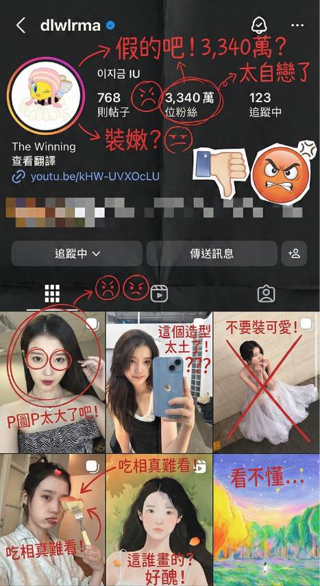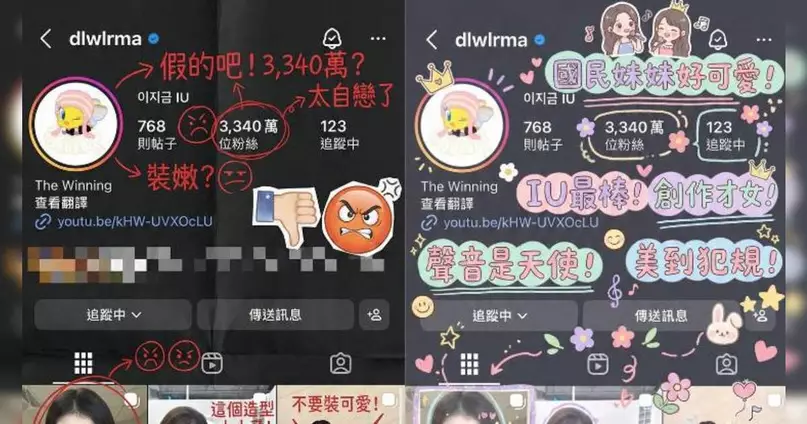 不少網民選擇以韓星作為「自製Hater」的創作主角,透過AI工具生成各種風格的手繪評價圖片。這些作品模仿真實的手寫筆跡,配上紅色墨水的批註和塗鴉,營造出彷彿有人在實體照片上親手寫下評論的效果。部分創作者更嘗試製作「誇誇群版本」,使用繽紛柔和的色系和可愛畫風來稱讚明星,形成強烈對比。
