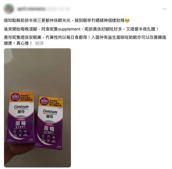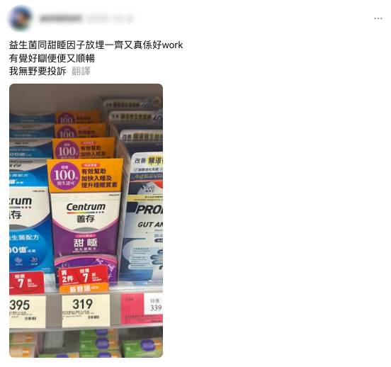 亦有網友表示這款助眠好物同時有益生菌和甜睡因子,直指用後「有覺好瞓便便又順暢」、「我無野要投訴」