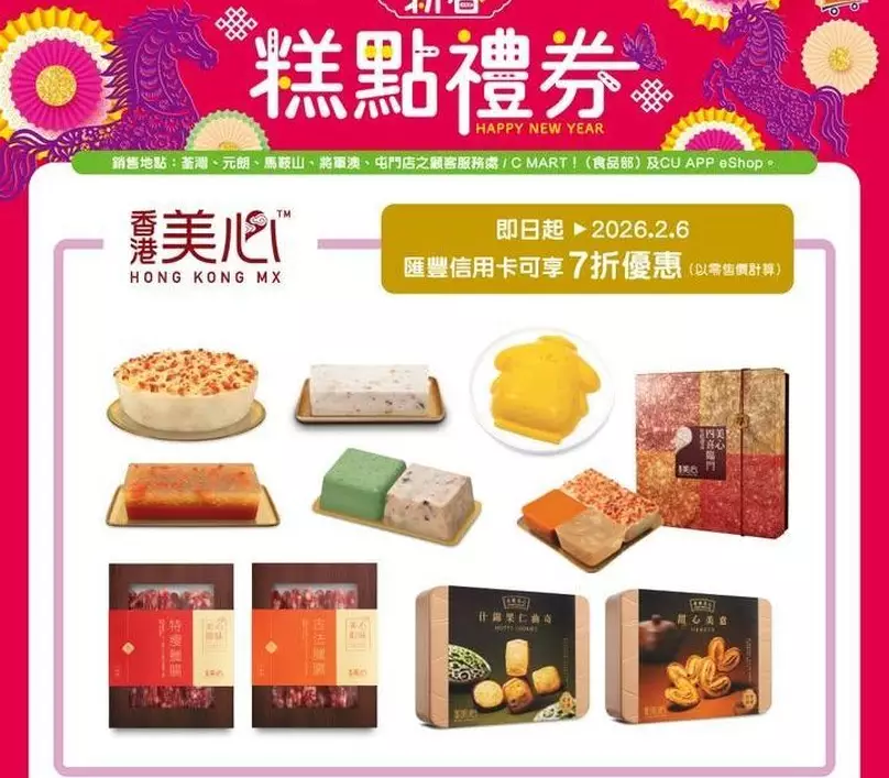 - 優惠詳情:包括美心、聖安娜、利苑、翠亨邨等糕點