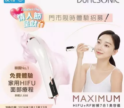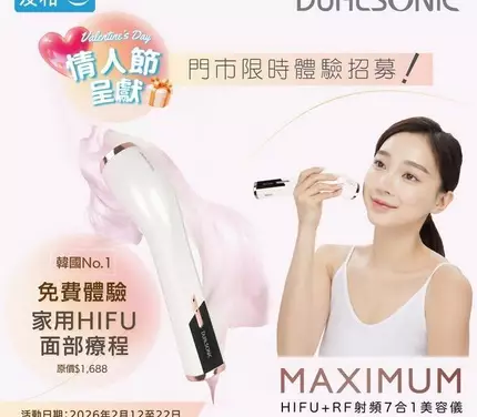 情人節想展現最佳狀態?友和YOHO 幫你急救! 預約即可免費體驗韓國 No.1 Dualsonic Maximum 7效全能方案(價值$1,688)!5 分鐘即時拉提,幫你還原精緻輪廓!💁♀仲可享現場驚喜優惠!
