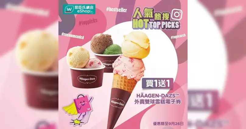 • 優惠詳情:Häagen-Dazs™外賣雙球雪糕電子券買一送一