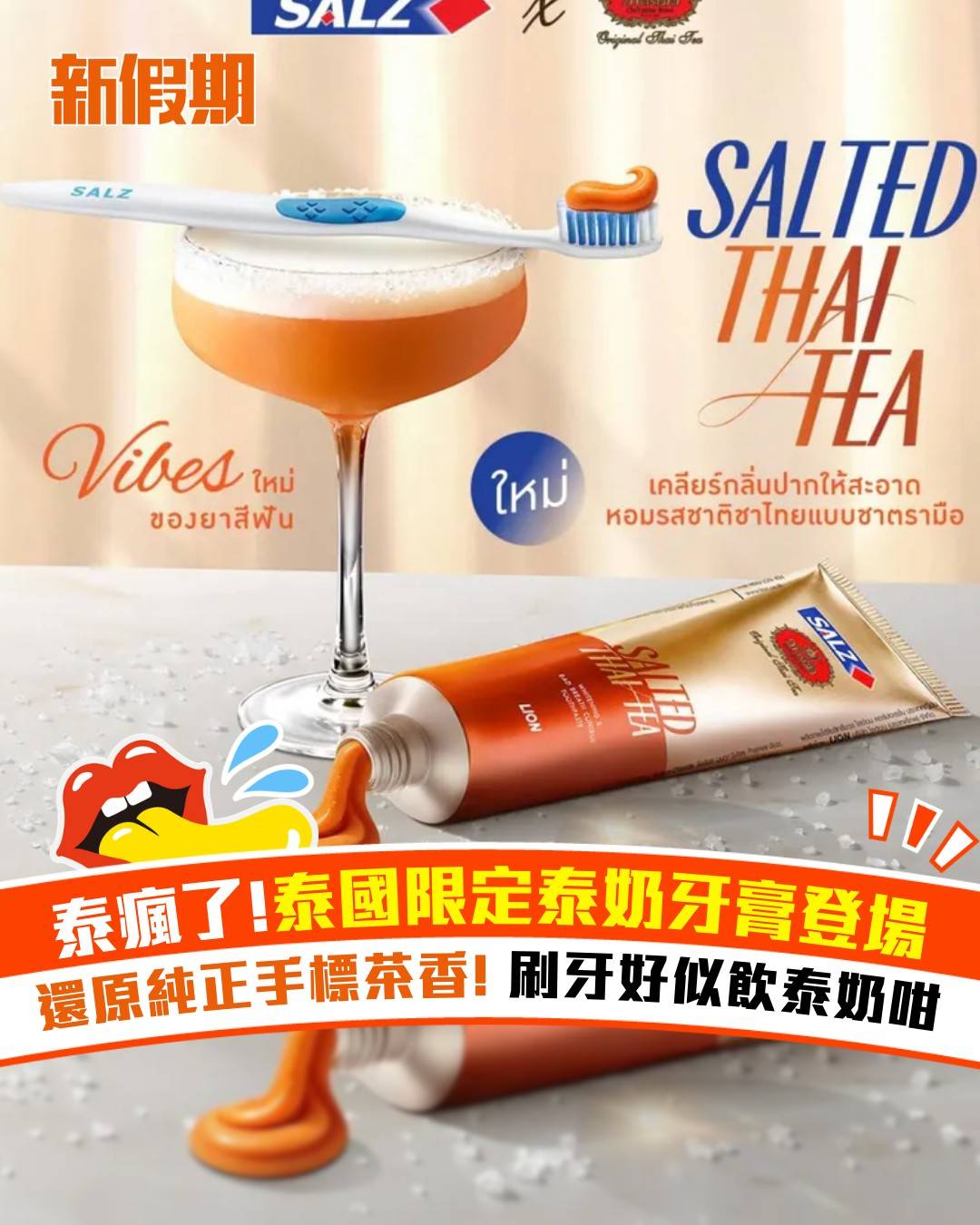 ChaTraMue 手標茶聯乘 SALZ Thailand,推出全球首創「泰式鹽配方奶茶牙膏」,將經典泰奶味道融入日常口腔護理中。 這款牙膏以手標茶的經典泰式茶香為創作靈感,完美融合泰式奶茶的柔和香氣與專業清潔效果。刷牙時既有熟悉的泰奶甜香,又帶有清涼薄荷感,讓每次刷牙都像在品嚐一杯香濃泰奶。
