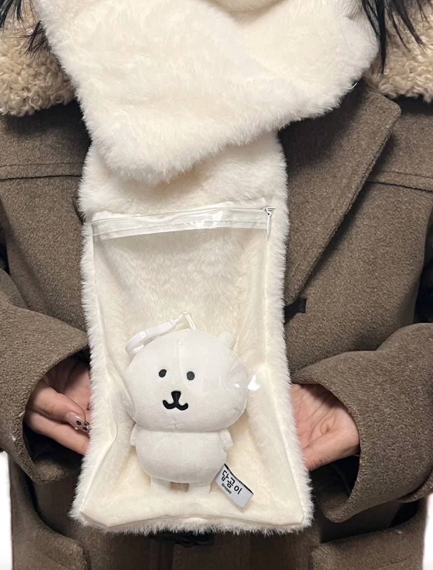今個冬天一款超可愛禦寒單品爆紅,可以「裝公仔」的透明口袋圍巾,被網民笑稱為「痛頸巾」,成功把普通圍巾升級成行走公仔展示櫃,實用又吸睛。