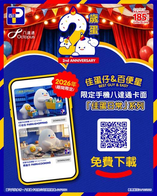 除了以上活動,大受歡迎的「佳蛋仔」手機八達通卡面亦已回歸,即日起至2026年12月31日,可免費下載兩款全新設計,讓「佳蛋仔」陪你每一天!