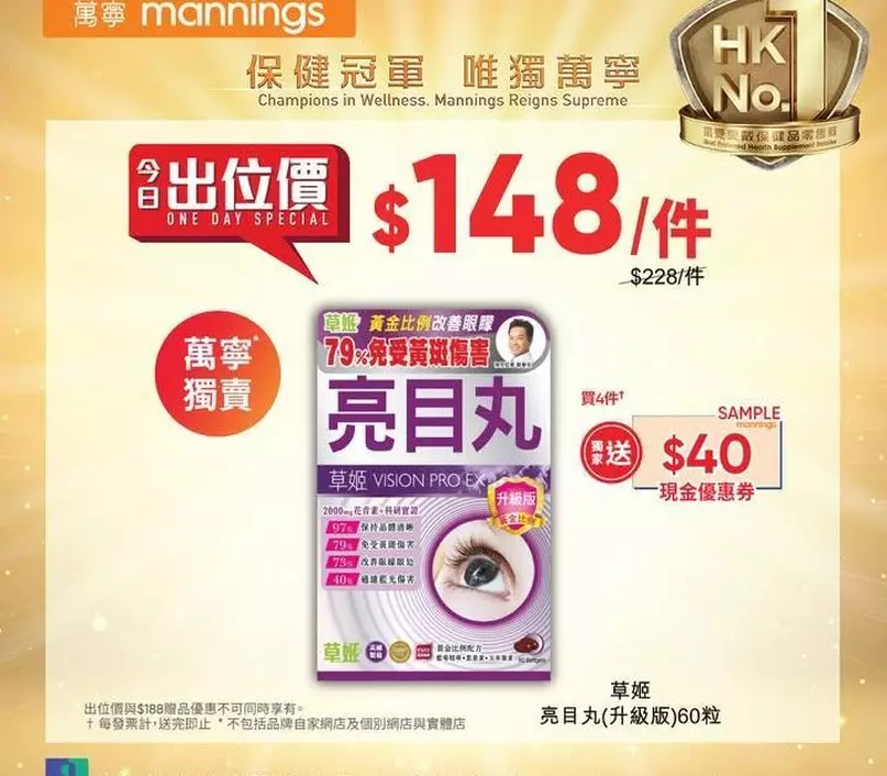 ✅草姬亮目丸(升級版)60粒👉$148/件,買4件† 獨家送$40 萬寧現金優惠券