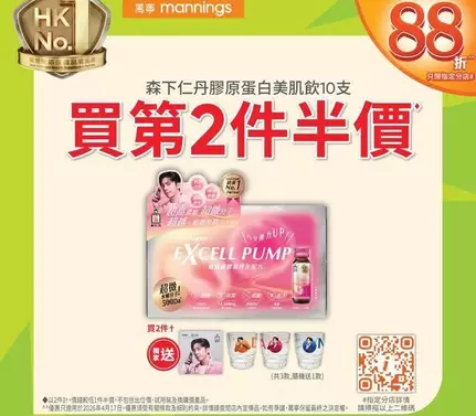 ^^優惠只適用於2026年4月17日。 滿$188享88折優惠只適用於指定香港萬寧門市~。官網買滿$288享88折只適用於萬寧官網,官網優惠只限2026年4月17日早上6時00分至晚上11時59分。折上折即指,全場指定產品優惠價格再享88折優惠,此優惠不適用於購買萬寧禮券、初生配方嬰兒奶粉、處方藥物、出位價產品及換購價產品、無折扣貨品、會員積分及印花活動換購品、塑膠購物袋徵費、易辦事EasyCash提款、八達通增值服務及每張訂單之運費。此優惠不可與enJoyDay、萬寧現金優惠券、消費券優惠券、銀聯優惠及其他優惠同時使用。於此優惠日及時段,不能使用任何萬寧現金優惠券。如有任何爭議,萬寧保留最後決定權。萬寧官網優惠碼只適用萬寧官網之會員使用(不適用於以訪客身份結帳),每位會員最多可使用該優惠碼3次,每張訂單只能使用一個優惠碼。優惠受條款及細則約束,詳情請參閱 www.mannings.com.hk。