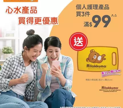 ✅個人護理產品△買3件滿$99† 送輕鬆小熊砧板(長37 x 闊23cm)