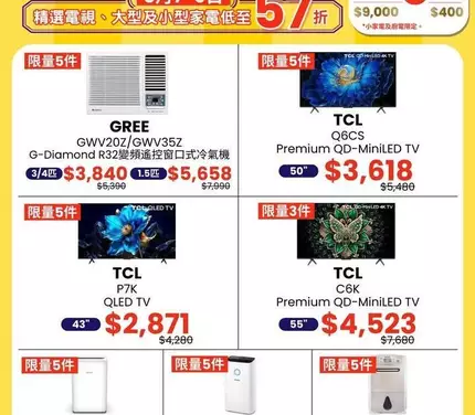 由即日起至3月9日一連三日,蘇寧鑽石山荷里活廣場門店推出超抵限時優惠,家電產品低至42折!💥多款熱門產品包括格力冷氣、TCL電視,當然仲有而家最需要嘅抽濕機等你選購,每款限量發售,售完即止!