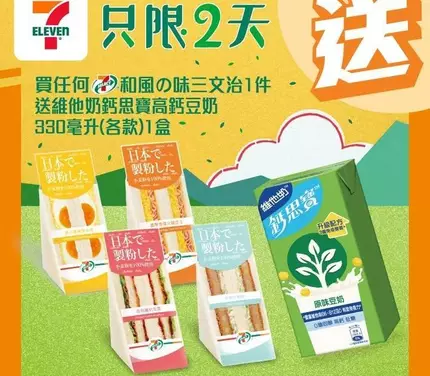 【 #買嘢食送嘢飲】📣買任何7-SELECT和風の味三文治1件🥪 送維他奶…
