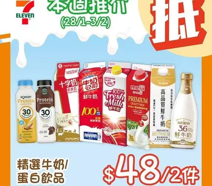 ✨由即日起至2月3日嚟7仔買精選牛奶/蛋白飲品$48/ 2件*🤍!