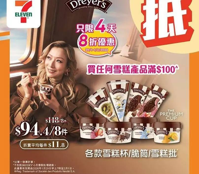 🪄宜家買 DREYER’S 各款雪糕杯/脆筒/雪糕批(不包括DREYER’S 心形雪糕批/雪葩條) ,更加享雙重著數,折實後只需 $94.4/8件*,平均每件$11.8!咁著數,梗係立即去7仔掃貨啦😋!