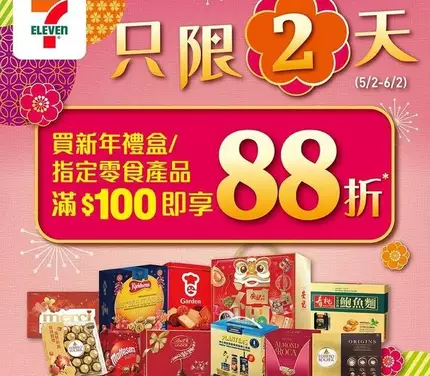 ✨由即日起至2月6日嚟7仔買新年禮盒/指定零食產品滿$100 ,即享有 88折優惠*!趁新年前用超抵價格入定年貨禮盒🧨,迎接好運新一年啦😆~快啲嚟 7 仔入貨,過個福氣滿滿嘅新年喇!立即睇睇有咩精選產品,準備好嚟7仔入貨啦!