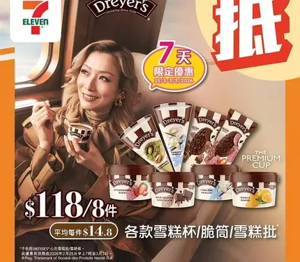 - 優惠詳情:Dreyer’s 各款雪糕杯/脆筒/雪糕批 at $118 for 8 pieces