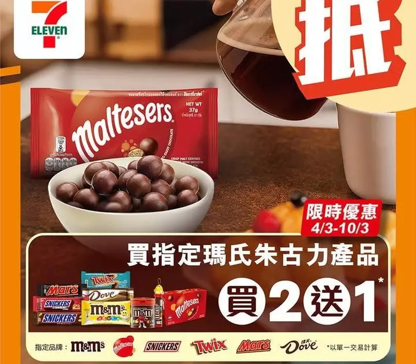 🪄由即日起至2026年3月10日到7仔購買指定瑪氏朱古力產品🍫,即可享買2送1優惠*🤩!快啲嚟7仔買齊多款朱古力,將呢份甜蜜帶俾身邊人啦🤎🤎!