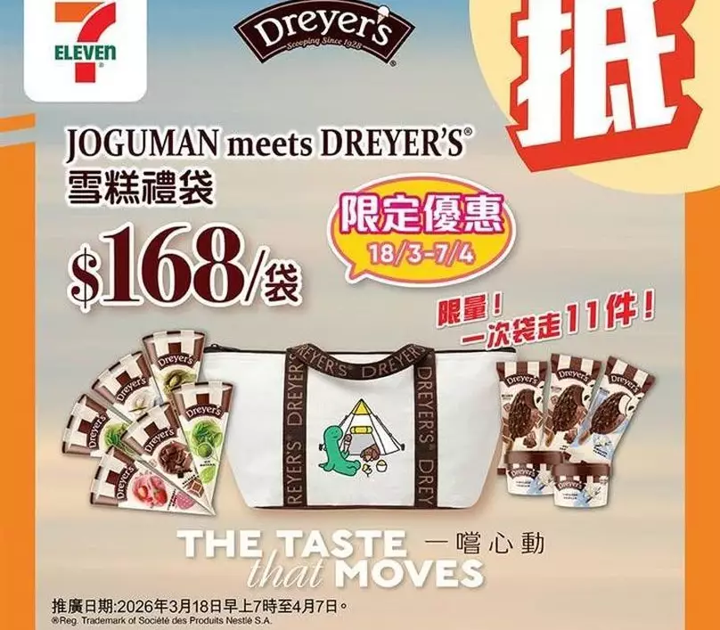 - 優惠詳情:JOGUMAN X DREYER’S 2026雪糕禮袋只需$168/袋