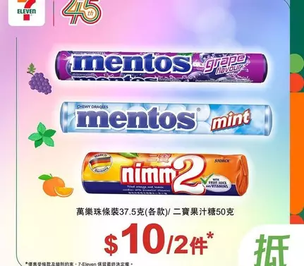 🪄由即日起至4月7日,嚟 7 仔買萬樂珠條裝 37.5 克(各款)/ 二寶果汁糖 50 克即享優惠價 $10/2 件*!最啱隨身帶,令你成日都有甜蜜嘅感覺😋 即刻嚟 7 仔入貨啦🛒~