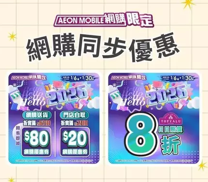 *只適用於AEON Mobile網購。以上優惠恕不可與AEON DAY同時使用。優惠受有關細則及條款約束