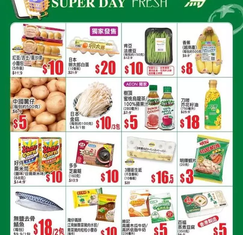 - 優惠詳情:Early bird sales for selected fresh products including fish, meat, vegetables, eggs, dairy, and dry goods.