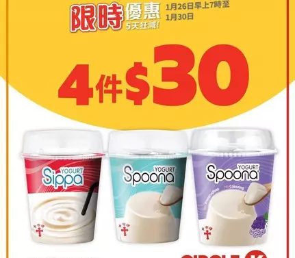 - 優惠詳情:十字牌純·乳酪/凝酪120克 4件$30, 雀巢牛奶公司鮮奶236毫升 3件$18