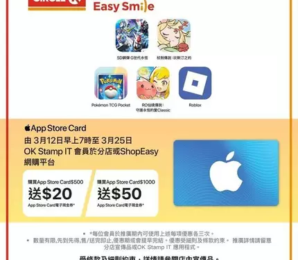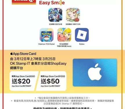 #OK便利店 #CircleK #OKStampIt #會員優惠 #AppStoreCard #禮品卡 #ShopEasy #限時優惠 #MAR10