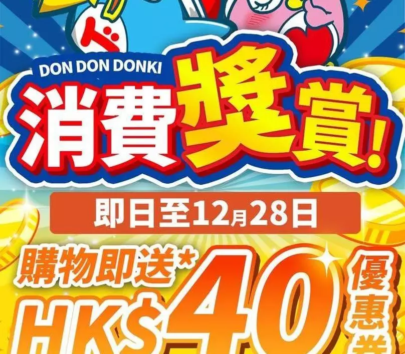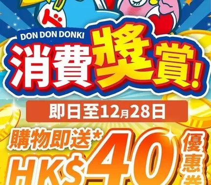 最後兩天❗️即日起至12月28日於全線DON DON DONKI分店購物🛒送*HK$40優惠券!🌟