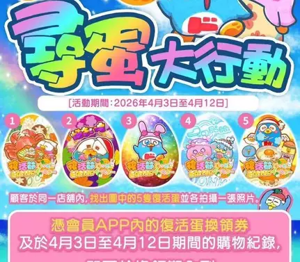 • 優惠詳情:消費及拍攝復活蛋照片活動