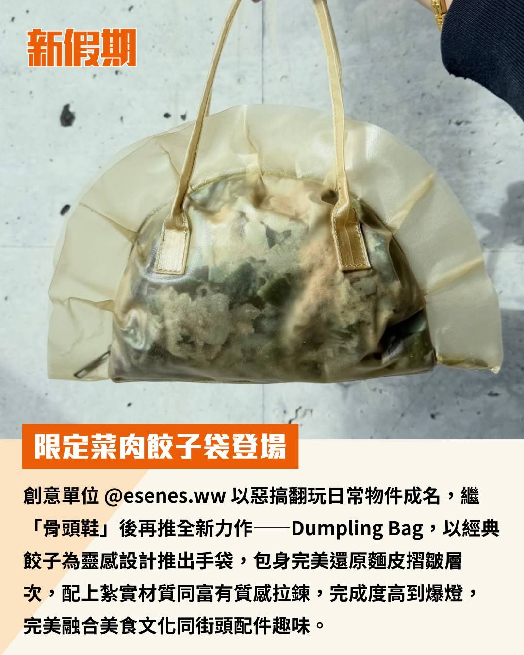 創意單位 @esenes.ww 以惡搞翻玩日常物件成名,繼「骨頭鞋」後再推全新力作——Dumpling Bag,以經典餃子為靈感設計推出手袋,包身完美還原麵皮摺皺層次,配上紮實材質同富有質感拉鍊,完成度高到爆燈,完美融合美食文化同街頭配件趣味。
