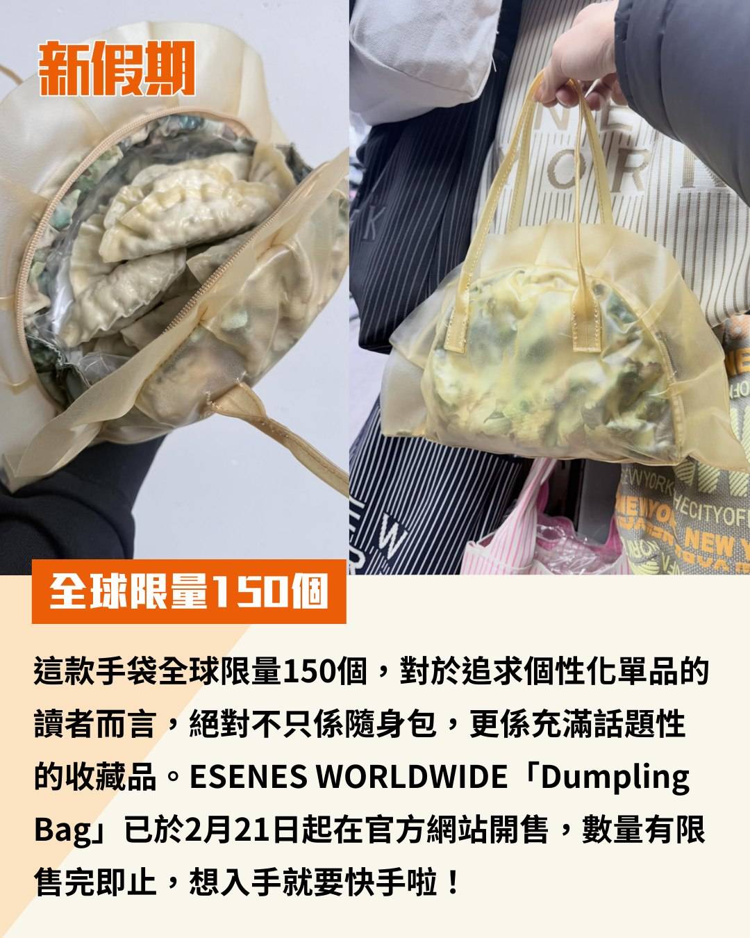 這款手袋全球限量150個,對於追求個性化單品的讀者而言,絕對不只係隨身包,更係充滿話題性的收藏品。ESENES WORLDWIDE「Dumpling Bag」已於2月21日起在官方網站開售,數量有限售完即止,想入手就要快手啦!