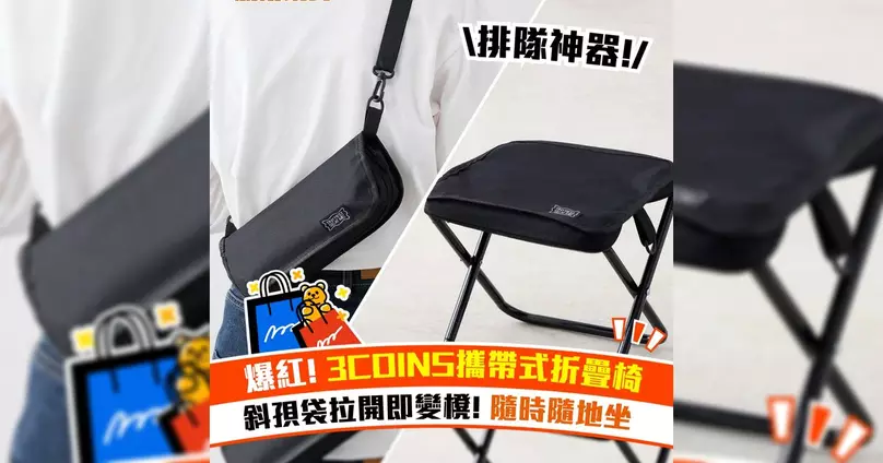 3COINS攜帶式折疊椅爆紅! 斜孭袋拉開即變櫈 隨時隨地坐