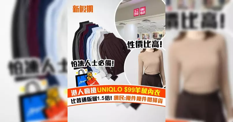 港人瘋搶UNIQLO $99羊絨內衣!比普通版暖1.5倍 網民:幾件幾件咁掃貨