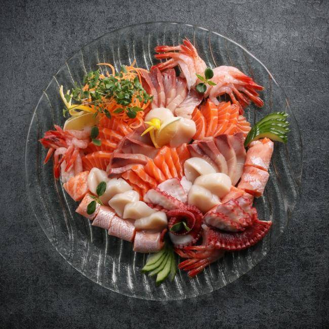 - 海鮮:加拿大雪花蟹腳、青口、磯煮鮑魚、刺身帶子、雜綿刺身、鮮海蝦