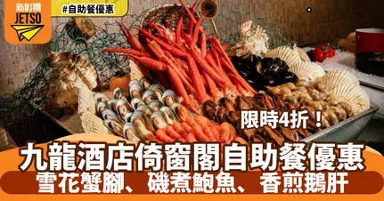 KKday與九龍酒店倚窗閣再度合作,推出自助餐快閃優惠,低至4折!折後「國際海鮮及養生膳食」自助午餐人均消費低至HK$213,「奈禾牛 · 海鮮饗宴」自助晚餐亦只需HK$373起,即可無限品嚐雪花蟹腳、磯煮鮑魚、香煎鵝肝及多款主題美食。立即查看下方優惠詳情,準時開搶!