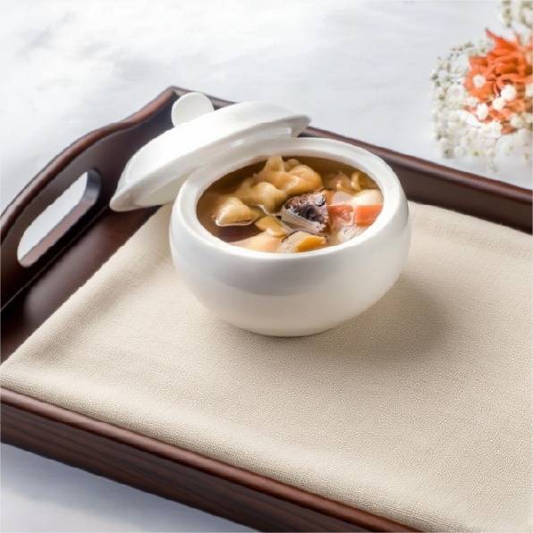- 每位敬送:蠔皇鮑魚伴金錢 1 客,滋補養生湯 1 客