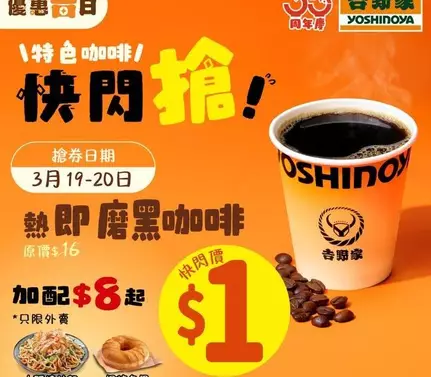 #吉野家 #Yoshinoya #熱即磨黑咖啡 #1蚊搶 #快閃搶 #黑咖啡控