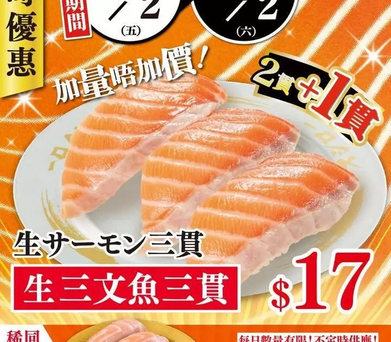 📢突發‼️2日限定‼️\🐟333!生三文魚三貫!✨/ $17🧡加量唔加價🤩…