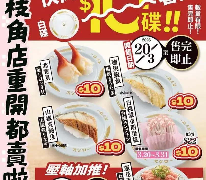 🔹【$10白碟快閃優惠】限定商品於壽司郎全線分店有售